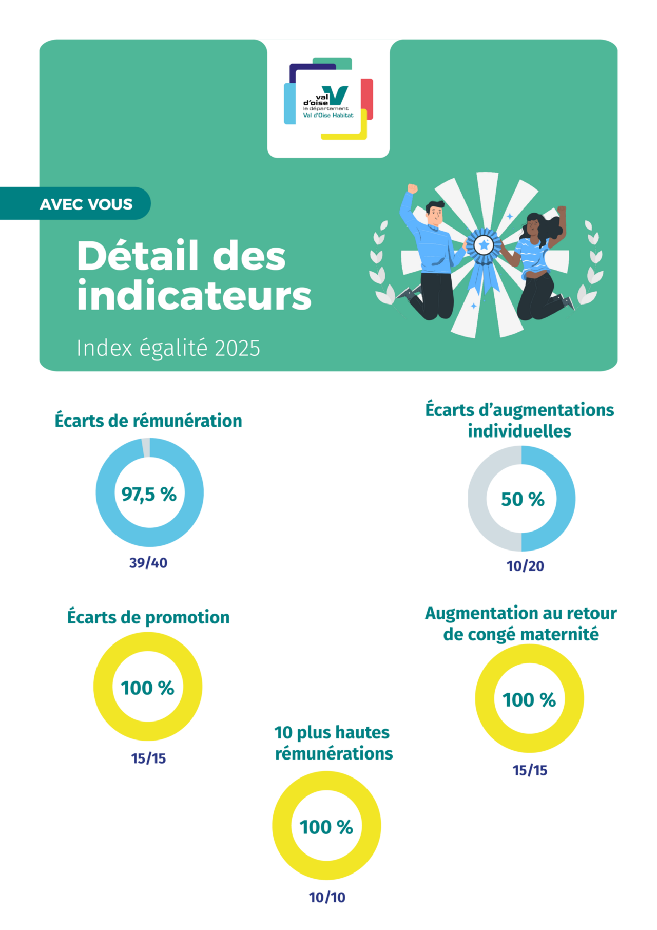 L’index égalité professionnelle de Val d’Oise habitat au titre de 2025 est de 89/100.